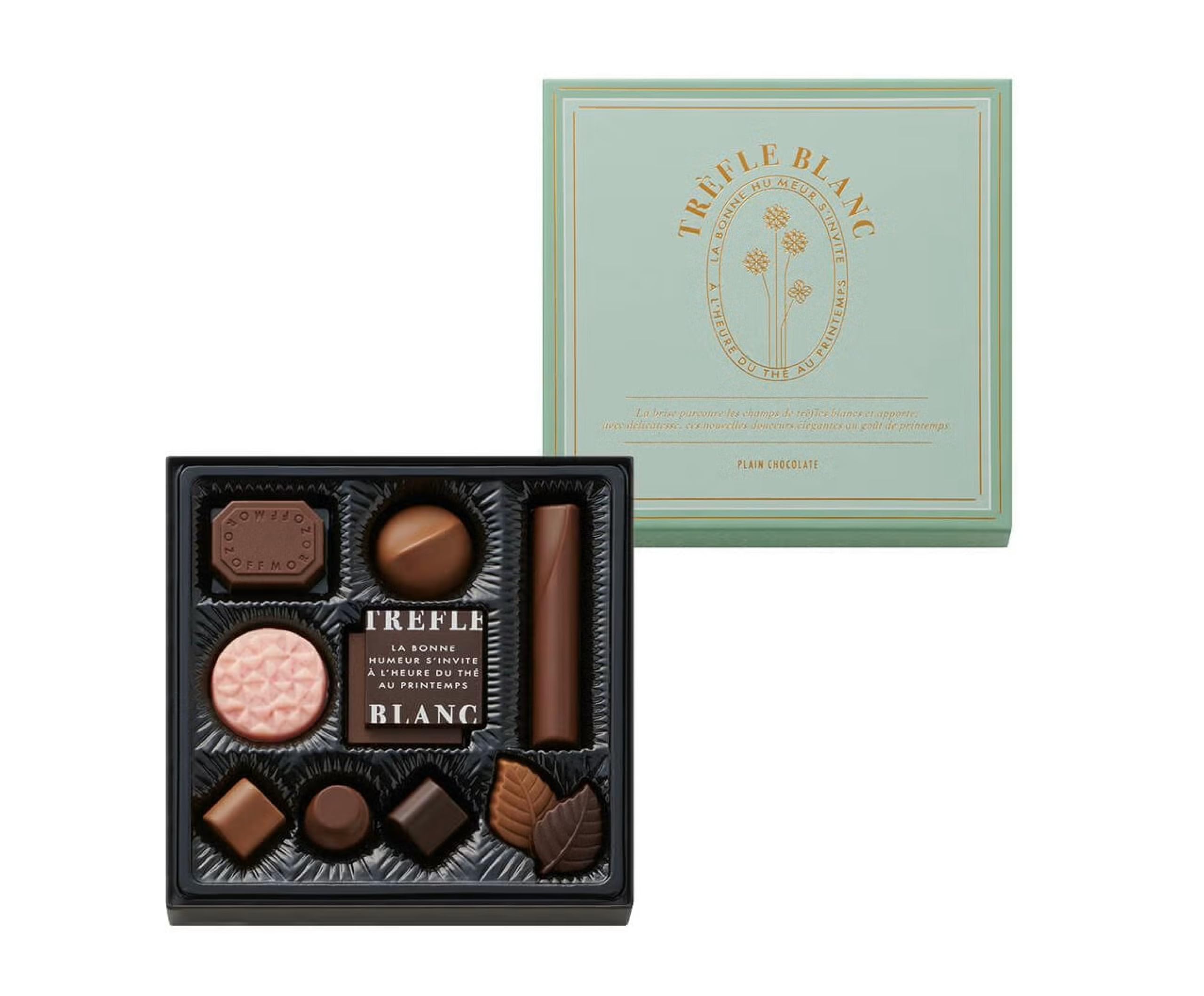さわやかなブルーのボックスにスイート、ミルク、エキストラミルクのシンプルな美味しさが人気のプレーンチョコレートと春らしいストロベリーの味わいを詰め合わせました。