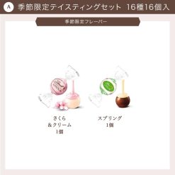 - 【内容量】16個 【内容】リンドール(さくら&クリーム 1個、スプリング 1個、ミルク 1個、ダーク 1個、ヘーゼルナッツ 1個、ホワイト 1個、ストロベリー 1個、70% Cacao 1個、キャラメル 1個、抹茶 1個、ストラッチアテラ 1個、ピスタチオ 1個、ソルテッドキャラメル 1個、ダブルチョコレート 1個、チーズケーキ 1個、ミルク&ホワイト1個) 【原産国】イタリア、スイス、アメリカ 【原材料】砂糖、植物油脂、ココアバター、全粉乳、カカオマス、脱脂粉乳、乳糖、バターオイル、低脂肪ココア、キャラメル、ヘーゼルナッツ、乳加工品、麦芽エキス、ピスタチオペースト、低脂肪カードパウダー、抹茶パウダー、ストロベリーパウダー、海塩(フルール・ド・セル)、塩、ジャガイモでん粉、トウモロコシ粉、ヒヨコ豆粉、塩パウダー、バニラビーンズ/植物レシチン、香料、着色料(赤ビート色素)、ゲル化剤(アラビアガム) 栄養成分表示(100g当たり) 【特定原材料など】乳成分・大豆